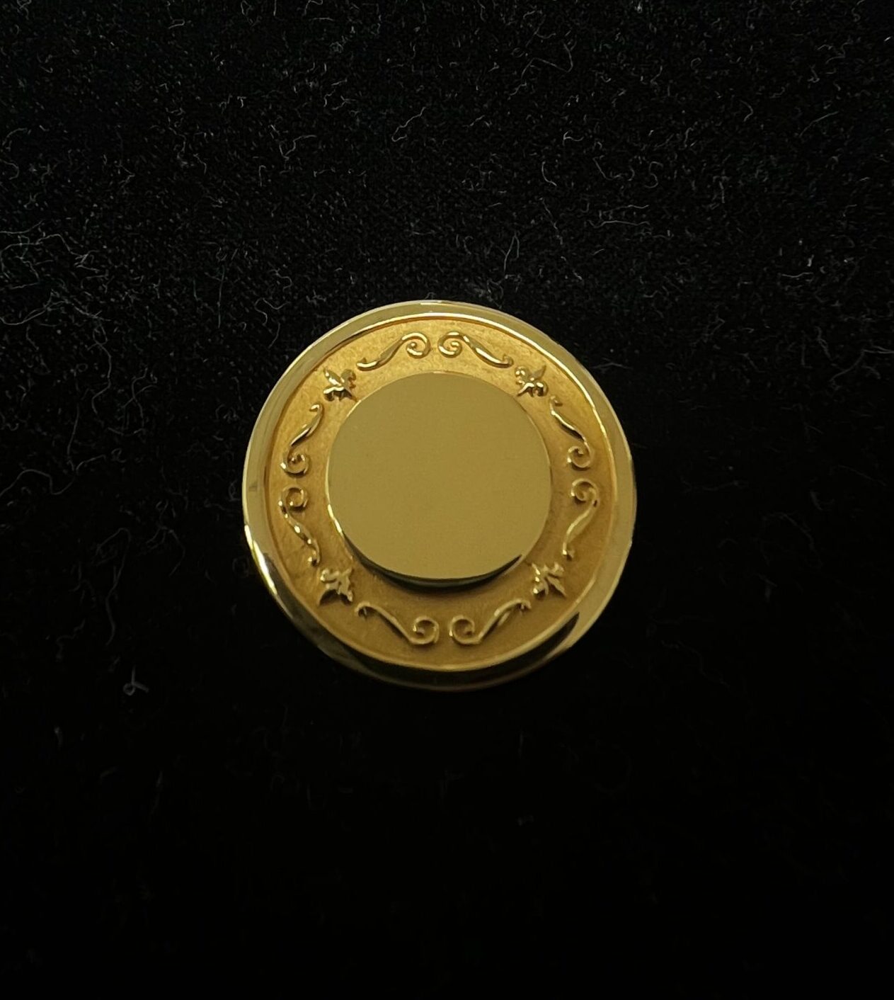 純金で作られたゴルフマーカーです。王家に伝わる百合の紋章を入れ、豪華で品のあるデザインにしました。各箇所ダイヤを入れることも可能です。中央部分にはイニシャルを入れるのがおすすめです。また、一からオリジナルでデザインを作りたい場合は別途お問い合わせいただければ対応させていただきますので、気軽にお問い合わせくださいませ。ホールインワン記念やお世話になった方へのプレゼント、大会の景品にと様々な場所で輝く逸品になっております。